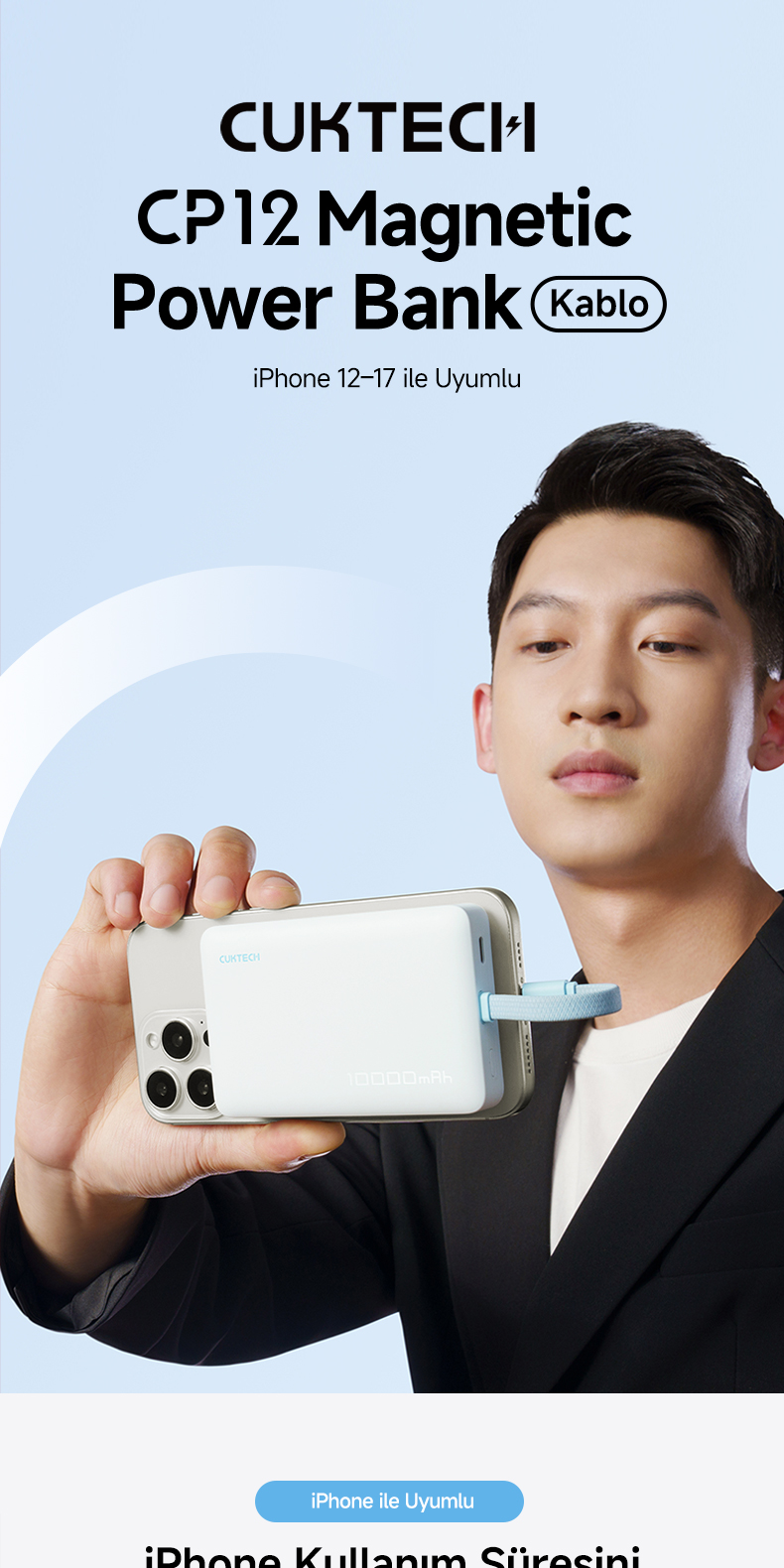 8. CUKTECH MagSafe Power Bank CP12 10000 mAh | 20 W Kablosuz Hızlı Şarj | iPhone 12/13/14/15/16/17 Serisi ile Uyumlu Taşınabilir Şarj Cihazı