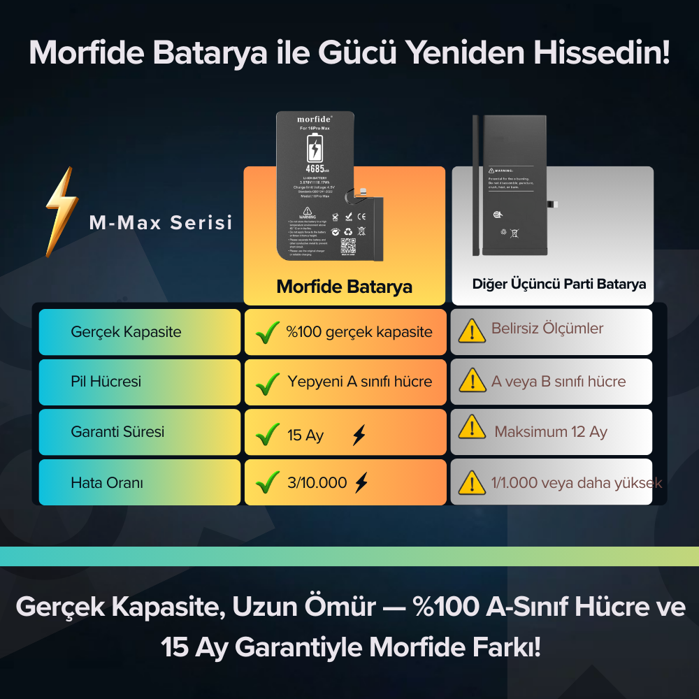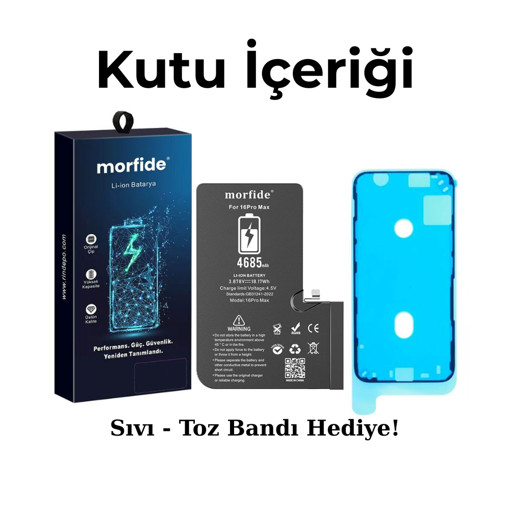 🔋 Morfide M-Max Serisi iPhone 16 Pro Max Uyumlu Yüksek Kapasiteli Pil (4685 mAh)
