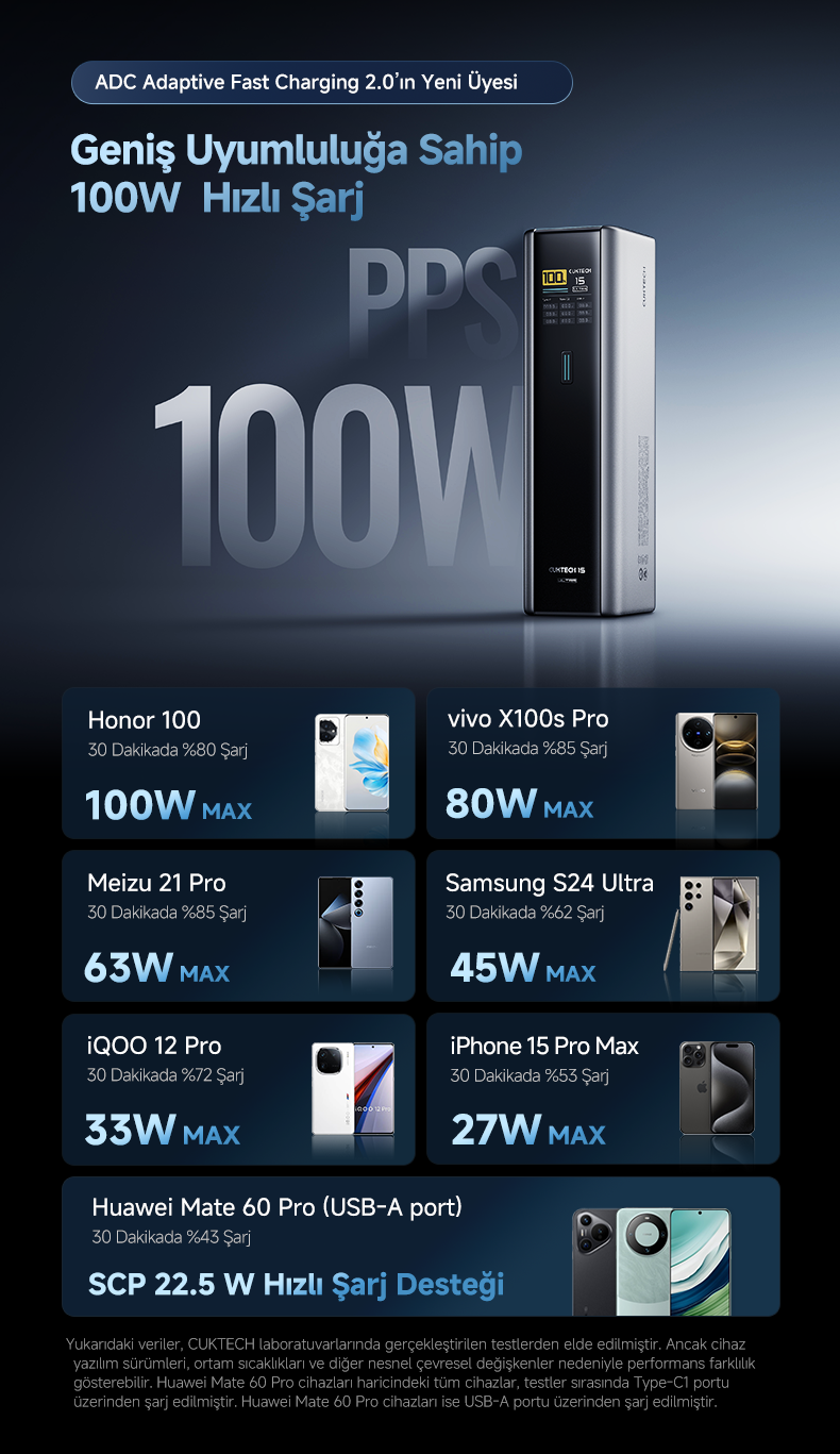 CUKTECH 15 Ultra, ileri seviye PD 3.1 teknolojisi ve yüksek verimlilik sağlayan ADC 2.0 akıllı protokol sistemiyle, kompakt boyutta profesyonel güç sunar.