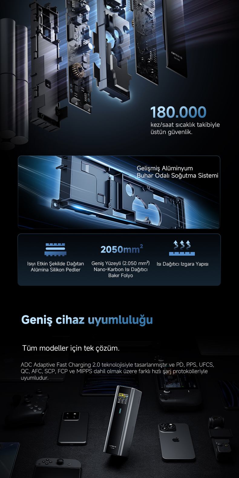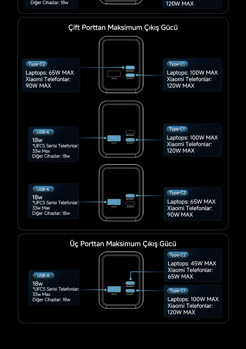 Aynı anda birden fazla cihazı hızlı ve kararlı şekilde şarj etme imkânı sağlar.