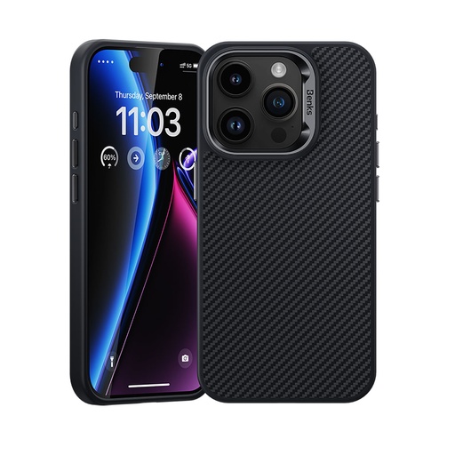 Apple iPhone 15 Pro Uyumlu Kılıf M-safe Özellikli Karbon Fiber Benks Essential ArmorAir 600D Kevlar Kapak